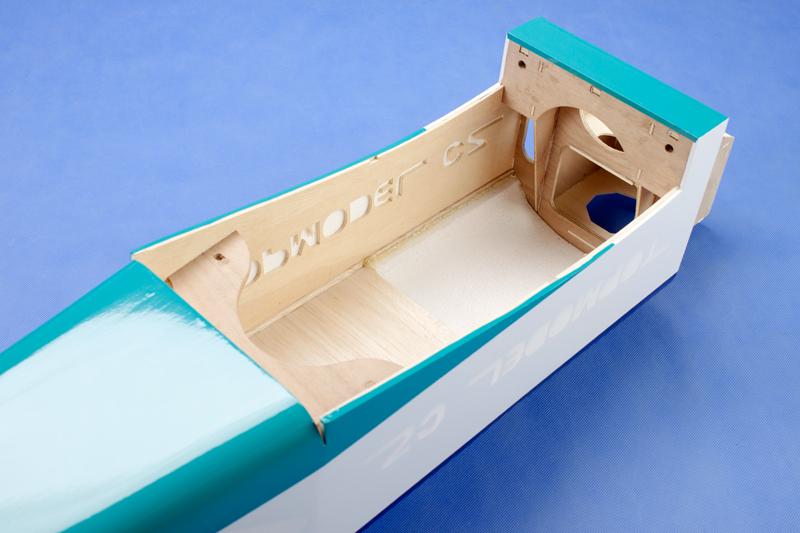 korpus wykonany z balsy z wypełnieniem styropianowym i pokryty dwukolorową folią Oracover®
