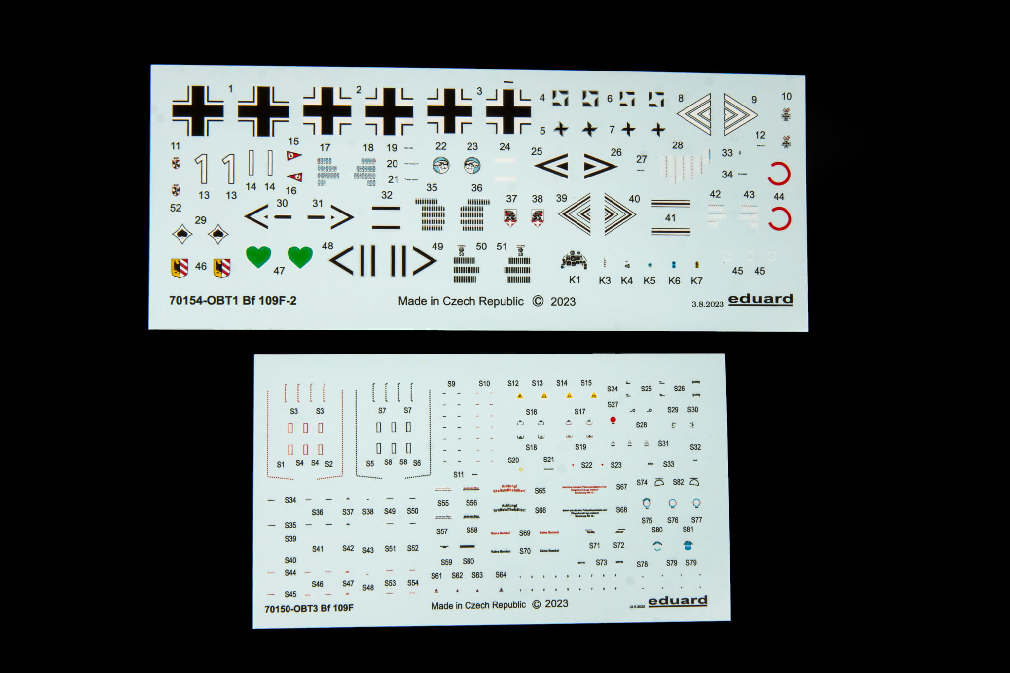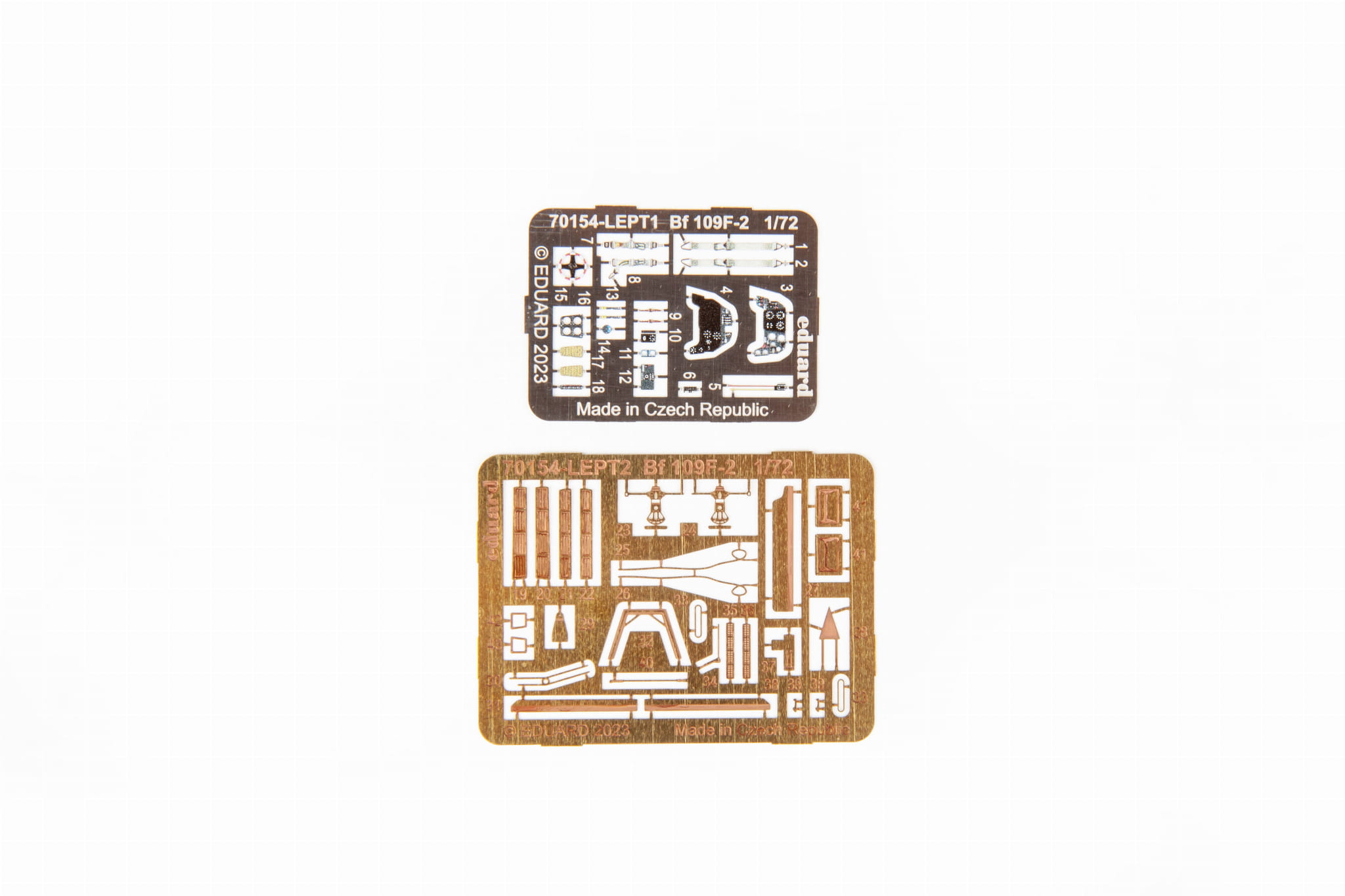 Zestaw edycji ProfiPACK niemieckiego myśliwca Bf 109F-2 z czasów II wojny światowej w skali 1/72.części plastikowe:Eduardopcje znakowania: 6kalkomanie: EduardCzęści PE: wstępnie pomalowanemaska malarska: tak