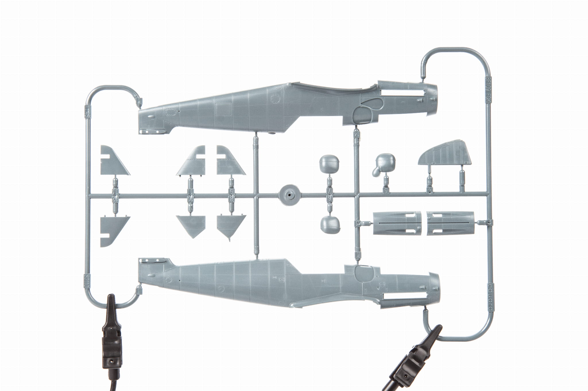 Model w skali 1/48 niemieckiego samolotu myśliwskiego Bf 109G-6 z II wojny światowej;Wydanie weekendowe. Zestaw zawiera oznaczenia z lat 90-tych XX wieku wyprodukowane w fabryce Erla w Lipsku. części plastikowe: Eduard liczba schematów kamuflażu: 4 naklejki: Eduard części trawione: nie maska: nie części żywiczne: nie